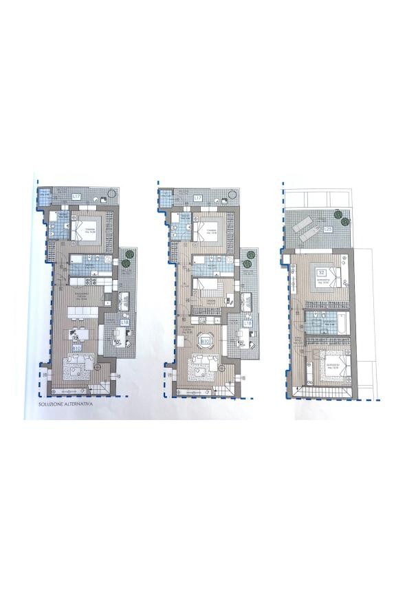 Appartamenti di varie dimensioni e tipologie con giardini terrazzi e balconi da vivere in esterno. Appartamento in oggetto sito al piano secondo di mq. 140 c.ca disposto su due livelli composto soggiorno con angolo cottura, 4 camere da letto, 2 bagni, ampi terrazzi e vivibili logge. Possibilità acquisto posto auto o box privati.